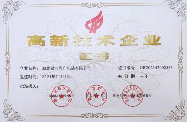 高新技術企業證書